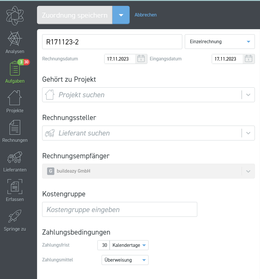 Die Maske zum Zuordnen von Rechnungen wurde komplett überarbeitet und vereinfacht.